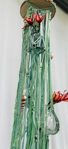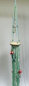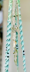 Sea foam green, light blue and white cord. Opal,green and rainbow beading and shells. Built in crystal or light catcher hanger.60.5 inches.