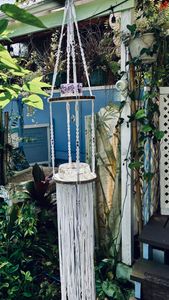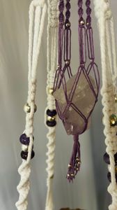 White double decker wood shelf amethyst and silver beading. Built in crystal hanger and light catcher.