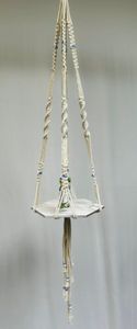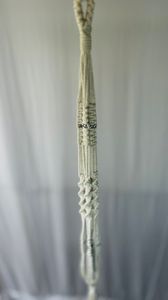 Off white thong with lavender beading. Can be worn with a shelf or pot.